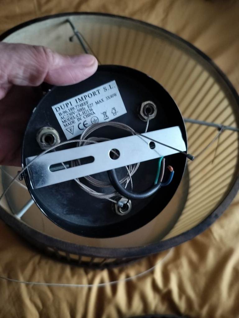 ADJUSTABLE SUSPENSION CABLE. CURRENTLY SET AT APPROX 20CMS FROM CEILING TO TOP OF DRUM.