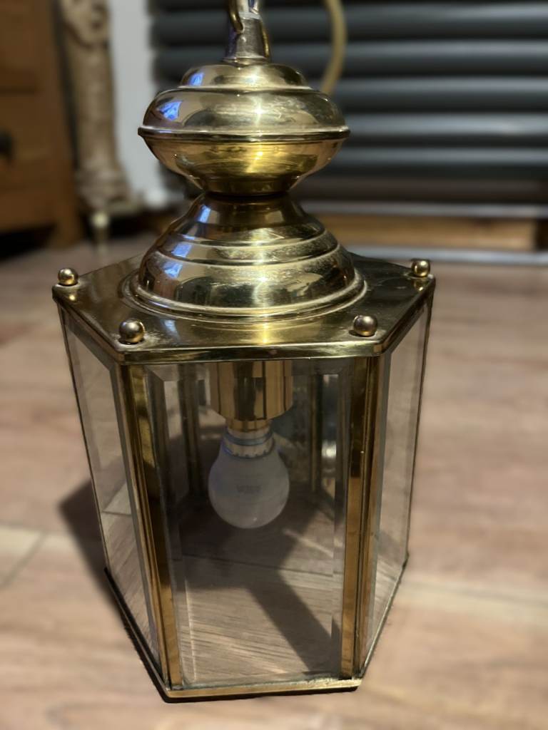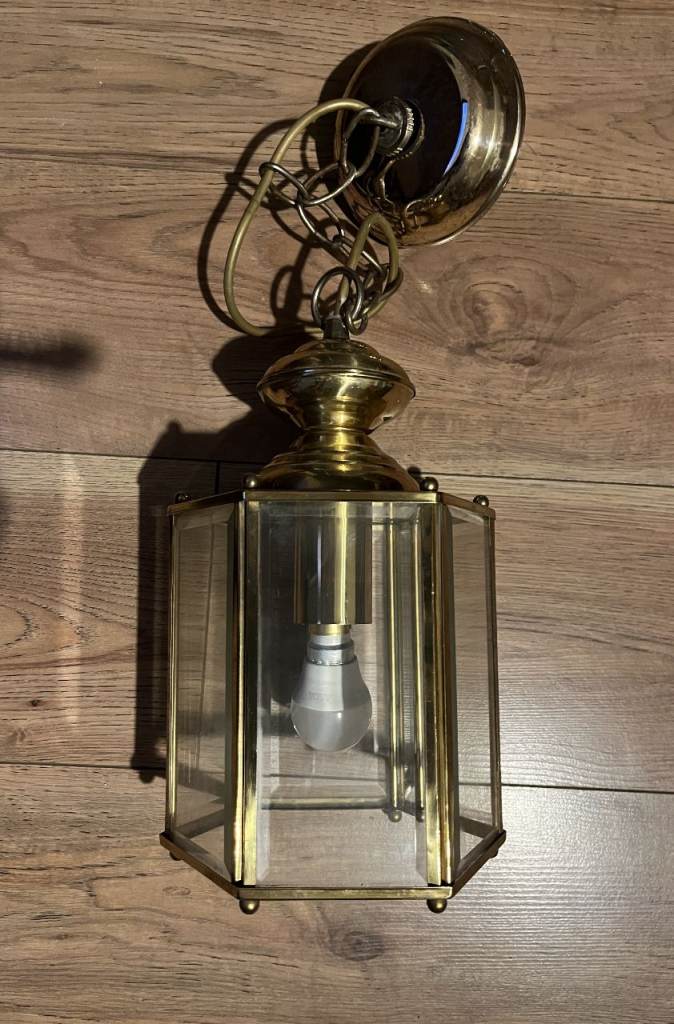 Posting for 13+ yearsVintage Antique Brass & Bevelled Glass Ceiling Light