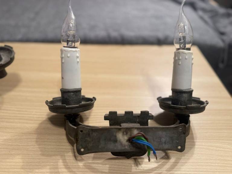 Vintage Gothic Strapwork Chandelier 1930s-1960s + Wall Lights