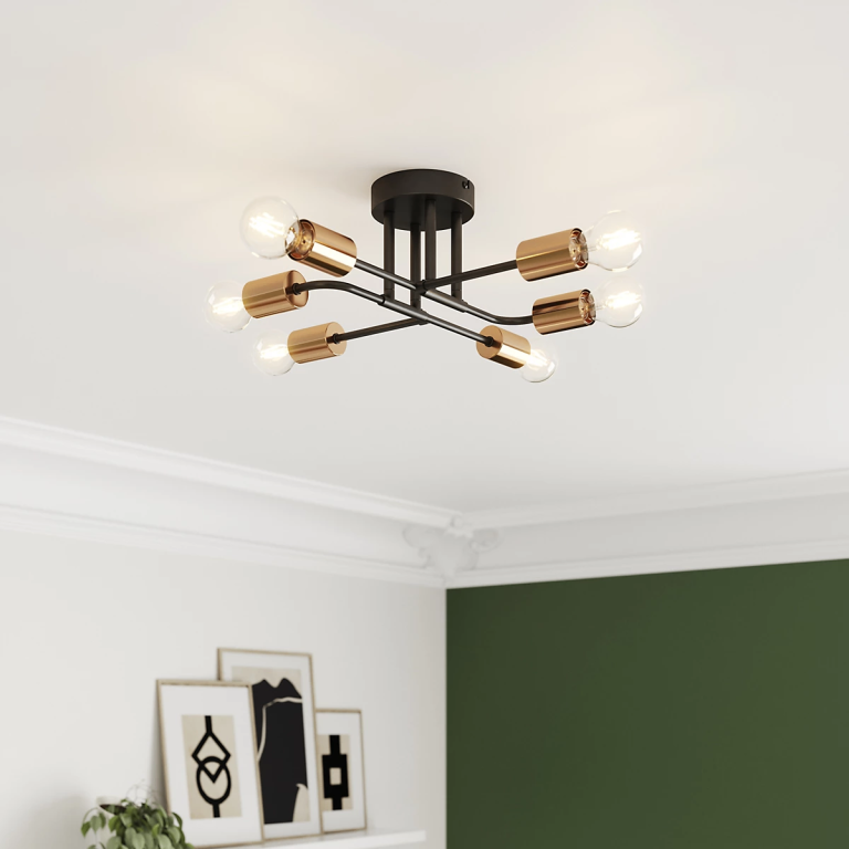 Add some industrial contemporary aesthetic into your living room, kitchen or dining room with this Detroit 6 lamp ceiling light. Its abstract shape would be the perfect addition to any modern home. With no shades this ceiling light provides maximum output illuminating your room.