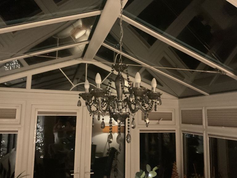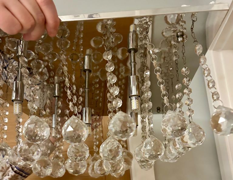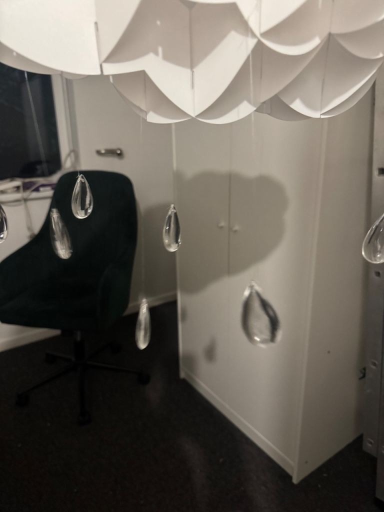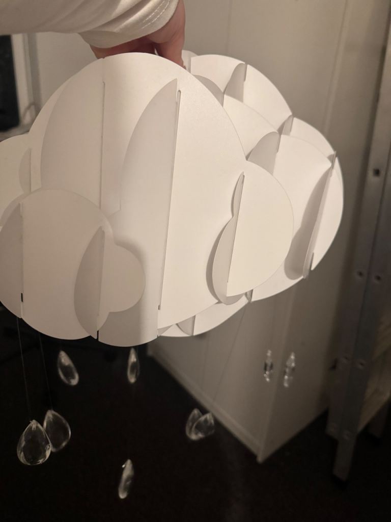 Cloud ceiling light shade with glass crystal hanging as an effect to look like rain.
