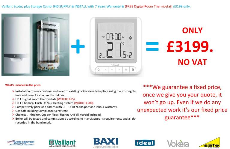 Vaillant Ecotec plus Storage Combi 940 40kw + Digital Wireless stat+ 7 Years Warranty £3299 (up to 10 years).