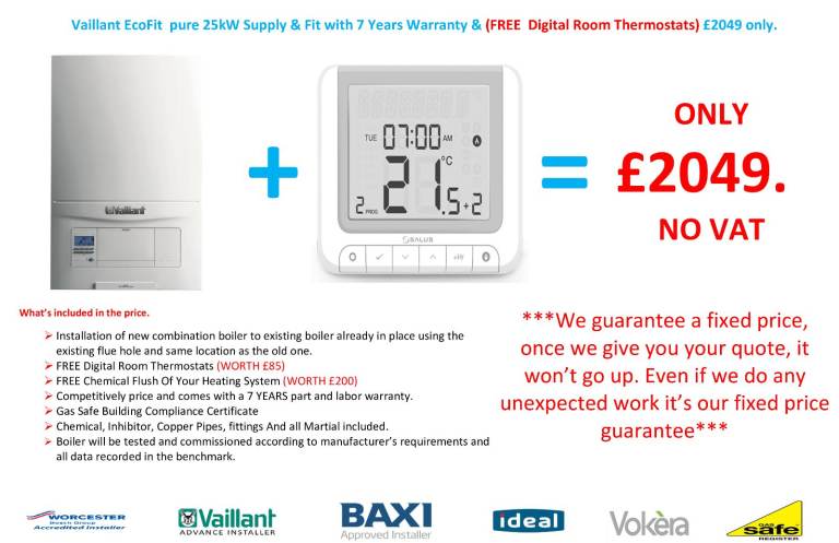 825KW + Vaillant Advance Filter + Digital Wireless stat + 10 Years Warranty £2099.