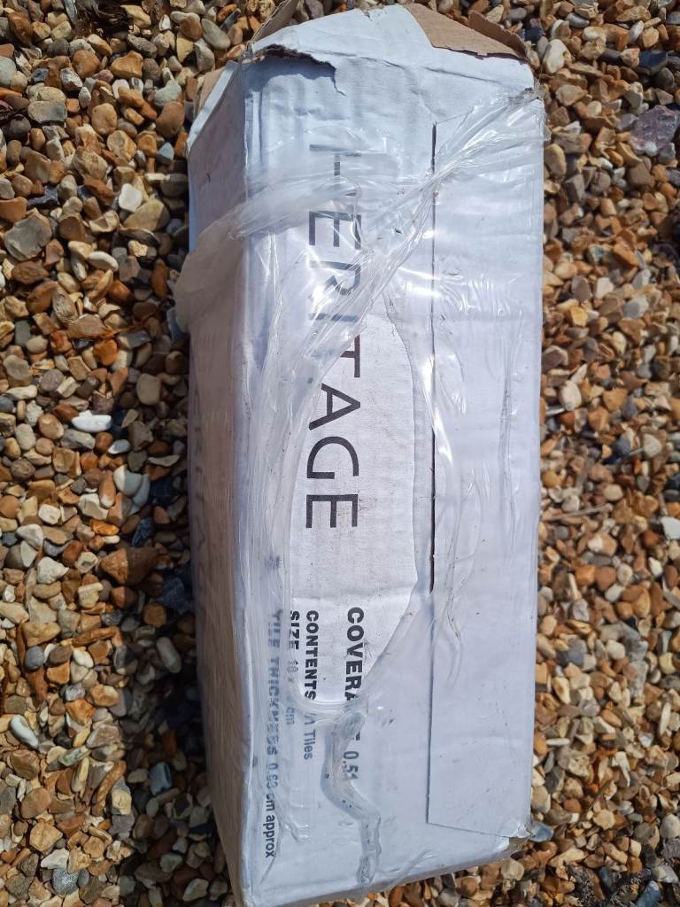 5 boxes of NEW Heritage wall tiles measuring 10 cm x 10 cm. The colour is Alaska Grey. 51 tiles in each box. The boxes are still sealed apart from one, which I opened to show the size and colour of tiles.