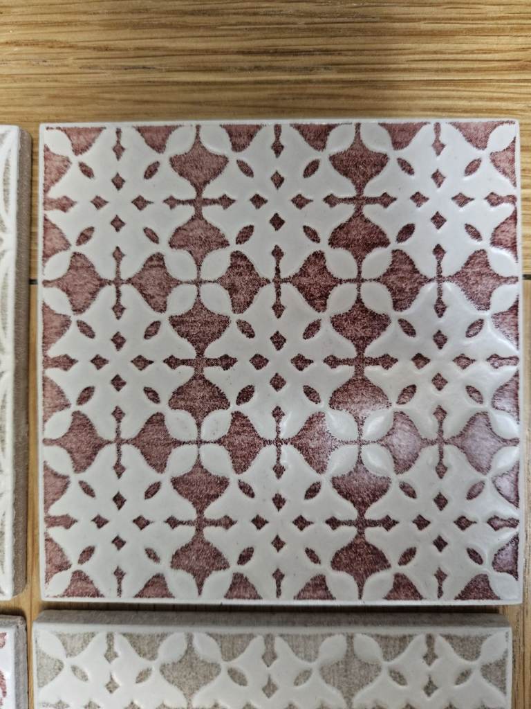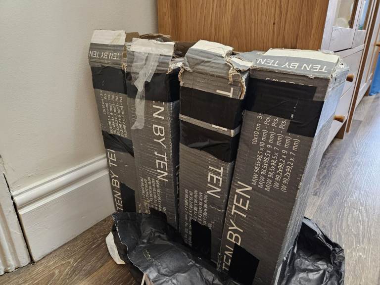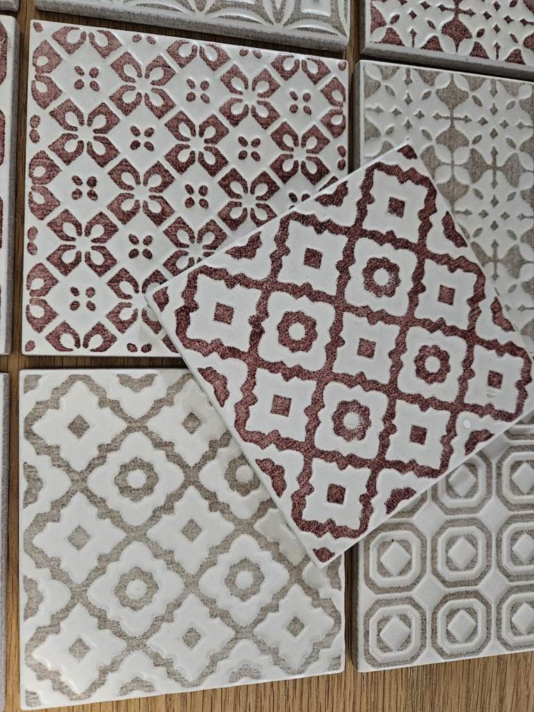 Job lot of unused tiles originally bought from Topps Tiles. 5 different designs in reddish and grey-brown colours.