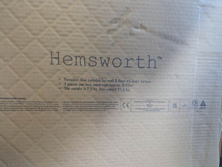 6 boxes of tiles, brand new. Total 18 tiles. 5.54m².
