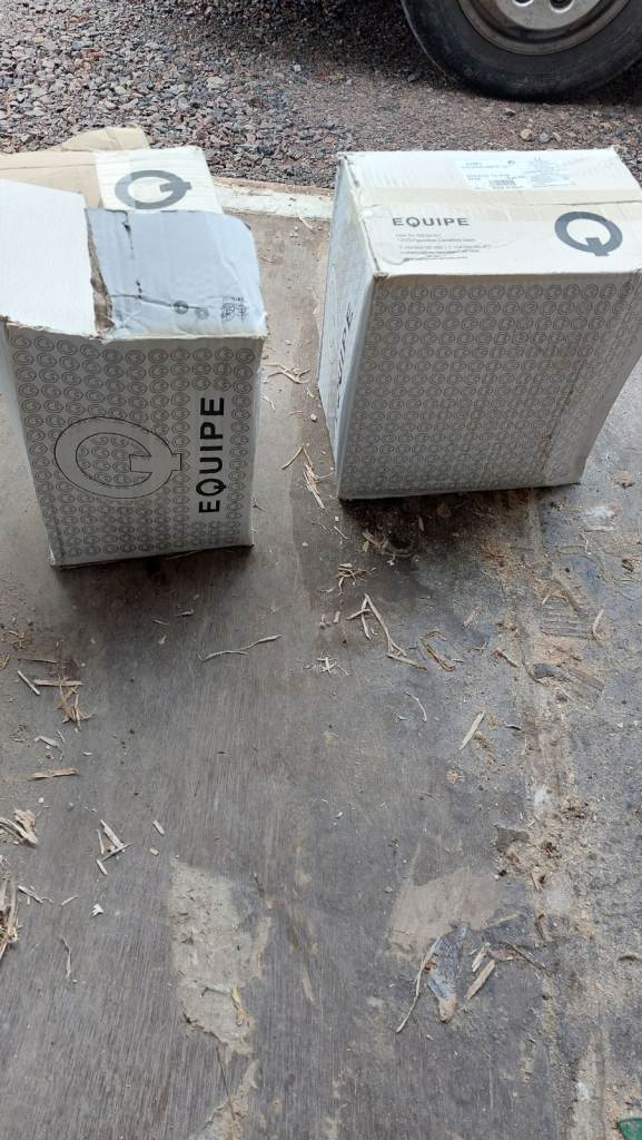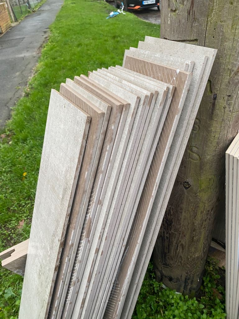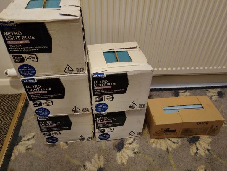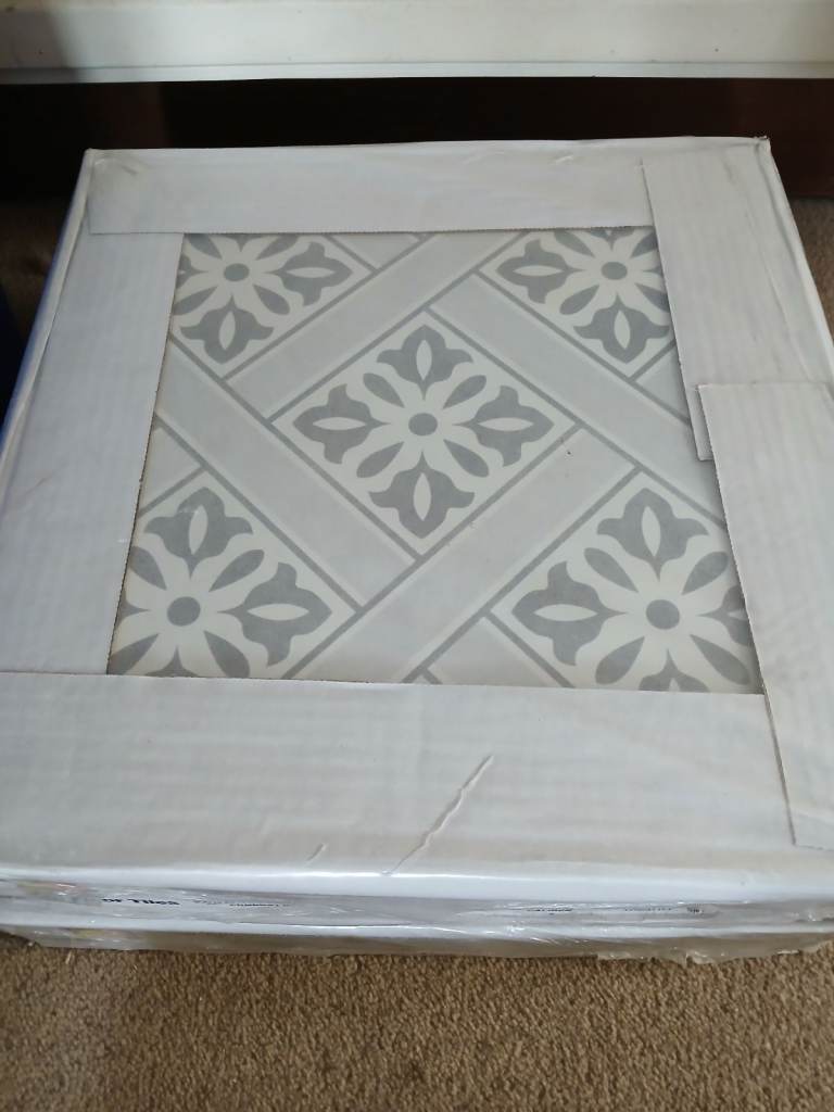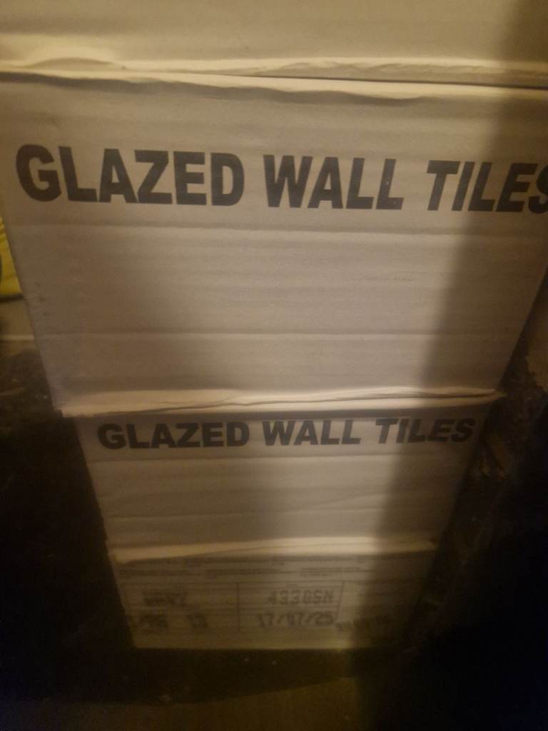 2 boxes of White Equipe Chevron (left) Ceramic Tiles for sale. In unused condition. Lovely timber grain effect style on the face of tiles as shown in photos.