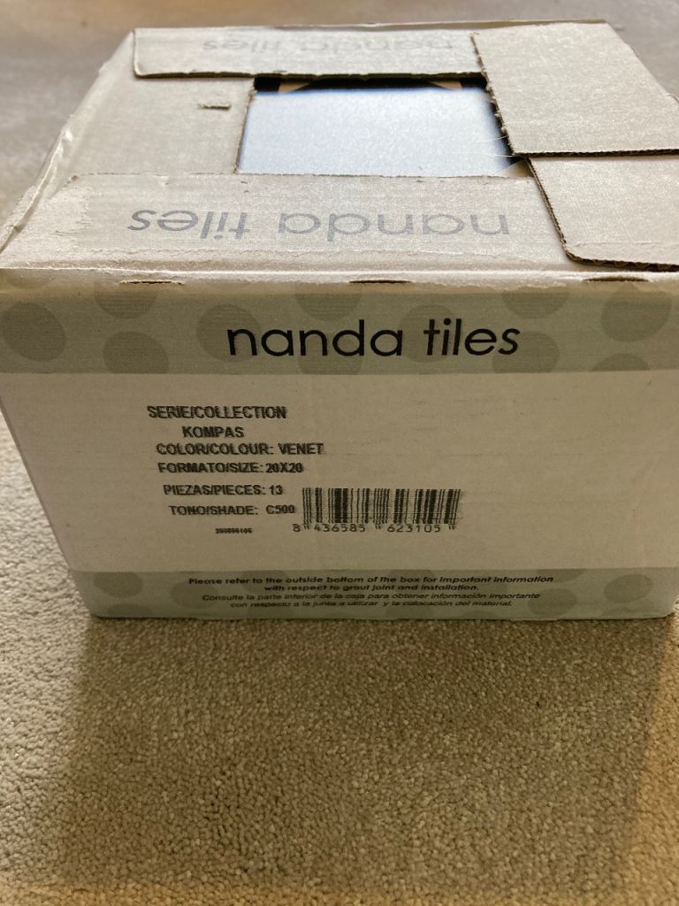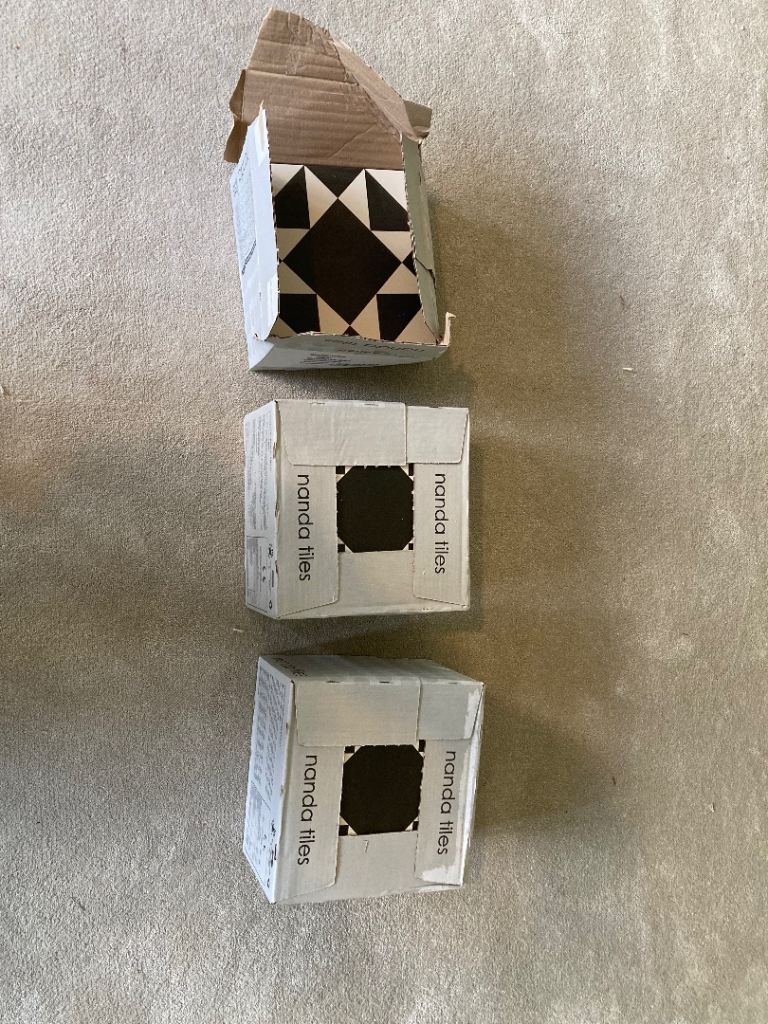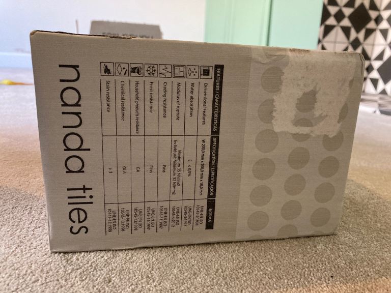 2 unopened boxes of 13 tiles + partial box of 5 tiles = 31 tiles altogether. 20cm x 20cm. Brand new and in perfect condition. Black and white art deco-style tiles. Called “Melville White Patterned Tile” at Porcelain Superstore. Made in Spain. Bought too many for the job. Worth £68 inc VAT and delivery from Porcelain Superstore is £40, even for small quantities. Collection only from S17.