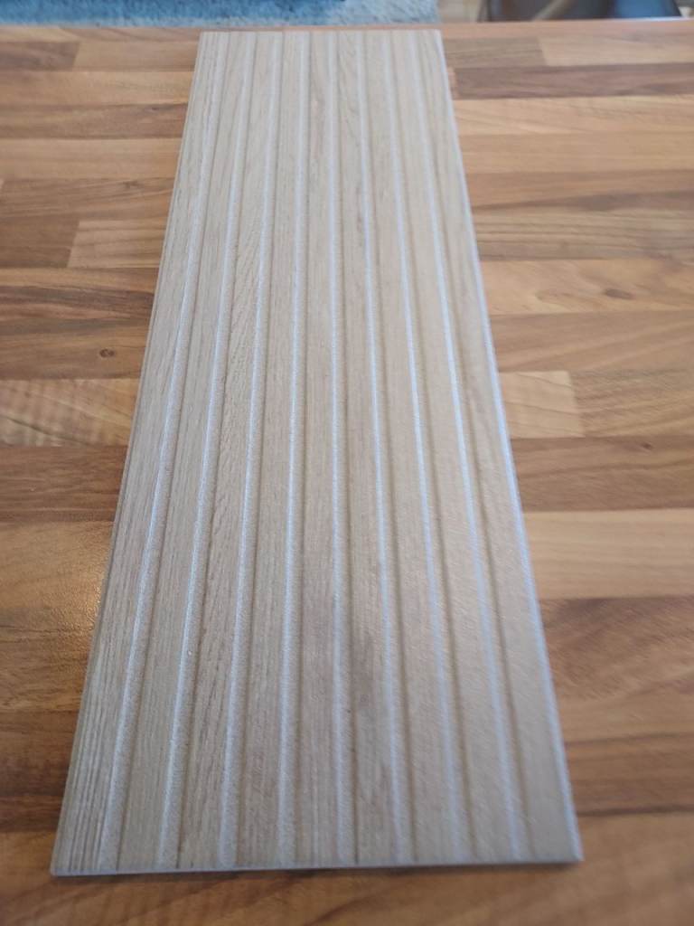 New style popular bathroom tiles that look like wood panelling. Bought for project that is now not going ahead