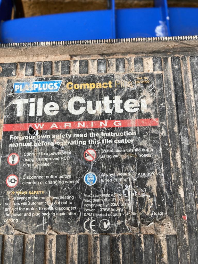 Tile cutter electric powers up and works ok I have not used it straight from a garage clearance