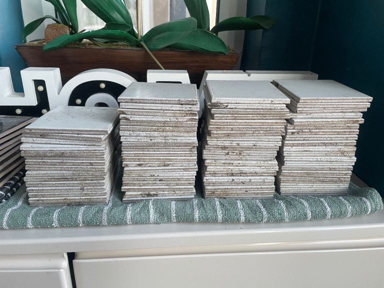 Each tile measures 400mm x 250.60mm x 9.50mm. 3 have been cut in half, 7 are full.
