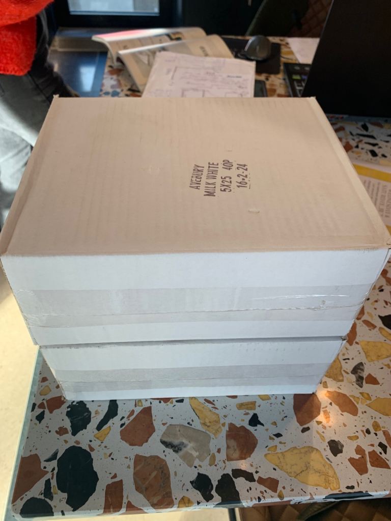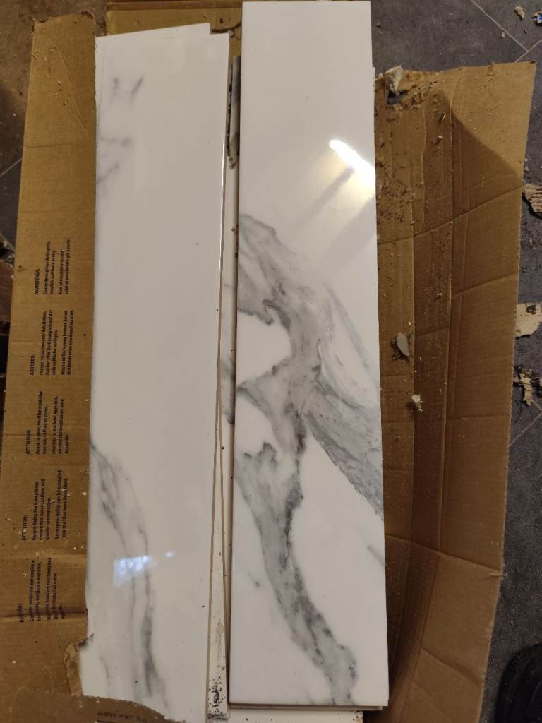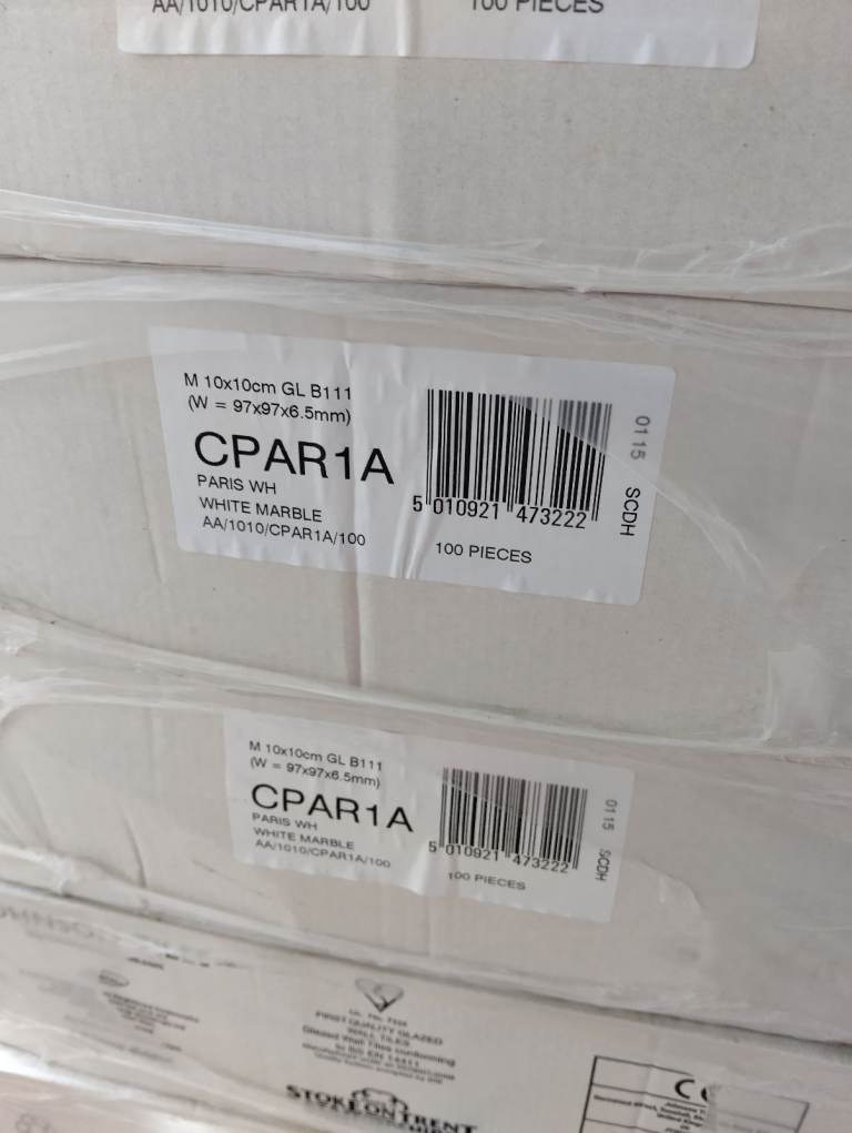 High quality glazed wall tiles manufactured in UK by JOHNSON TILES. White marble colour. Tile size 97/97/6,5mm.Price is per 1sq/m (1box). Collection only. Cash payment on collection day.
