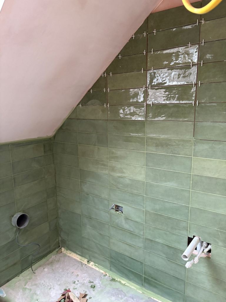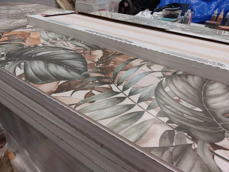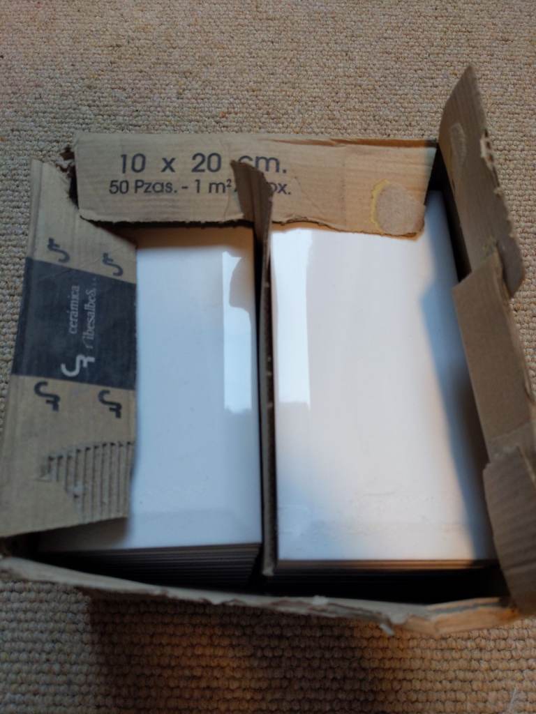 We have matt white ceramic tiles 30x90 or 33x100 which go together with the above feature tiles. These are left over from projects so we are doing great deals on them.