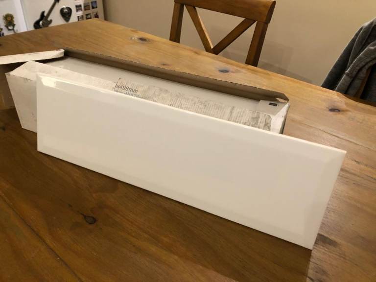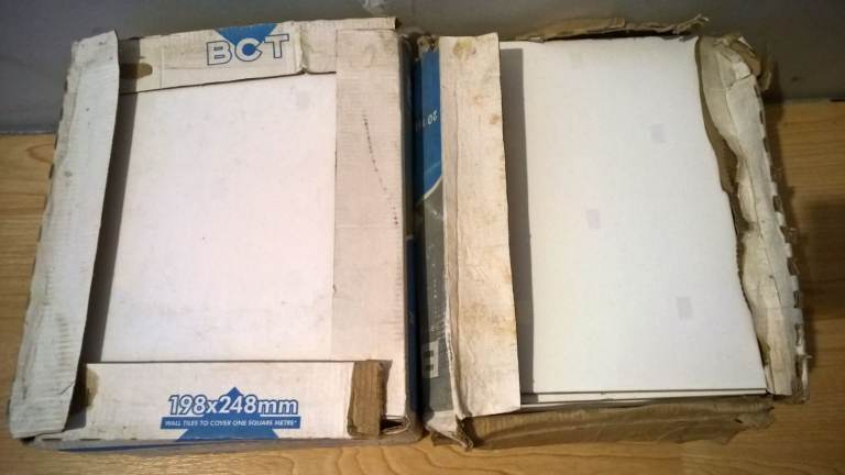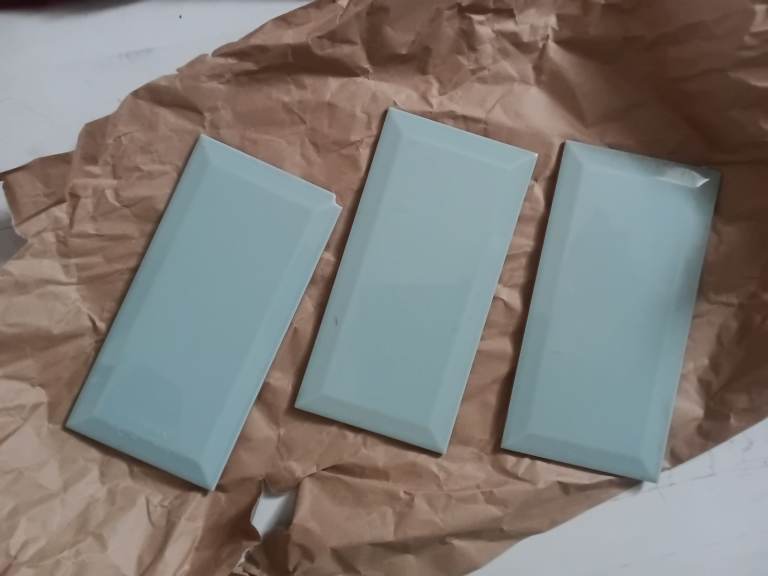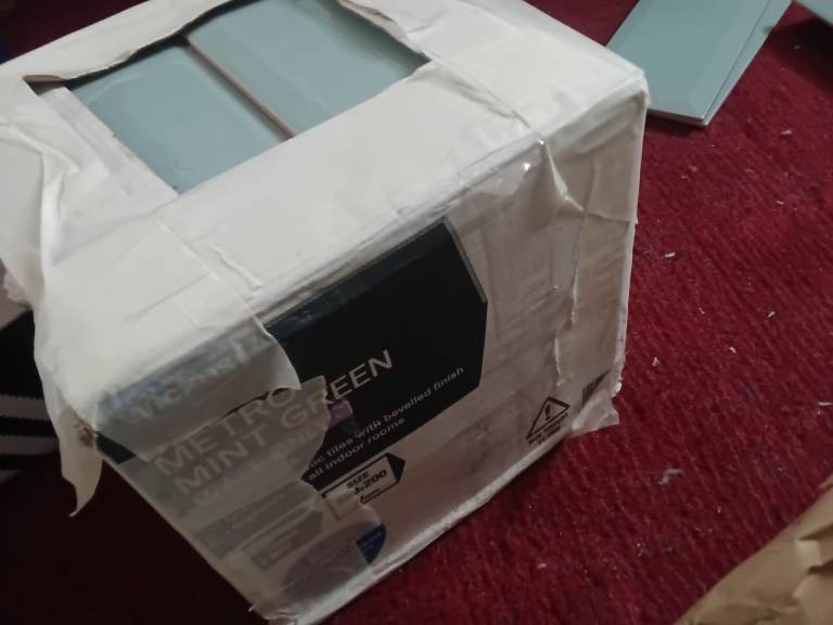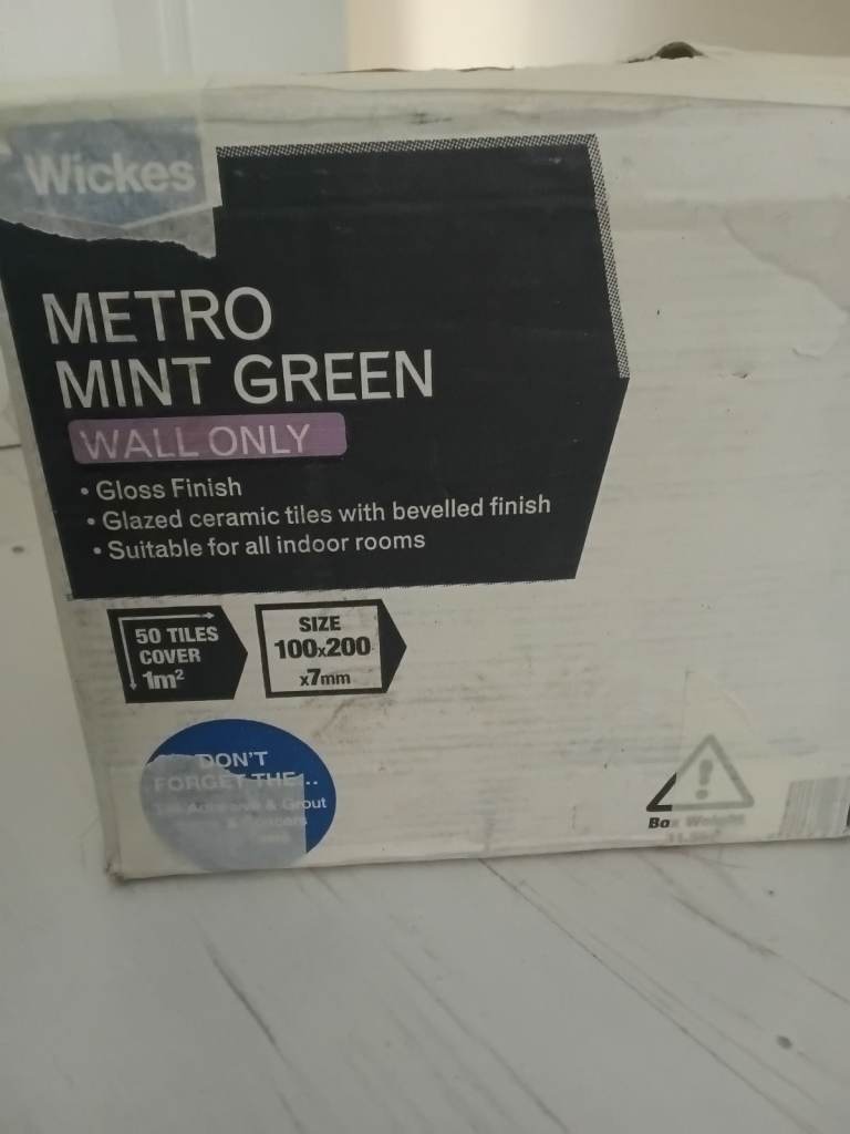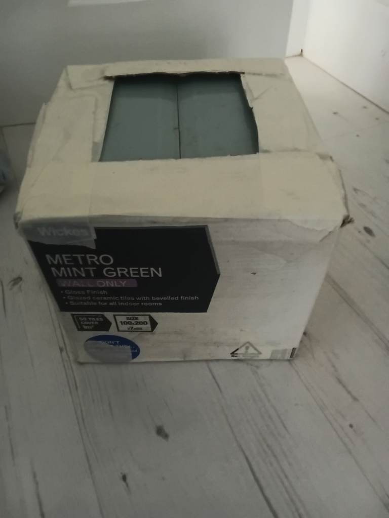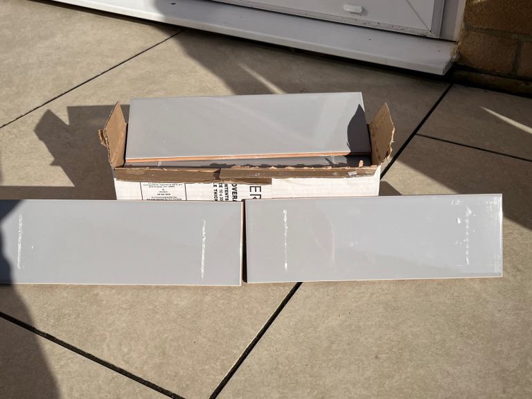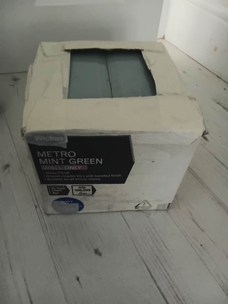 Wickes brand metro tiles with bevelled edge. 2x boxes of 50, plus 38 complete in tact tiles and 1 additional tile with chipped edge.