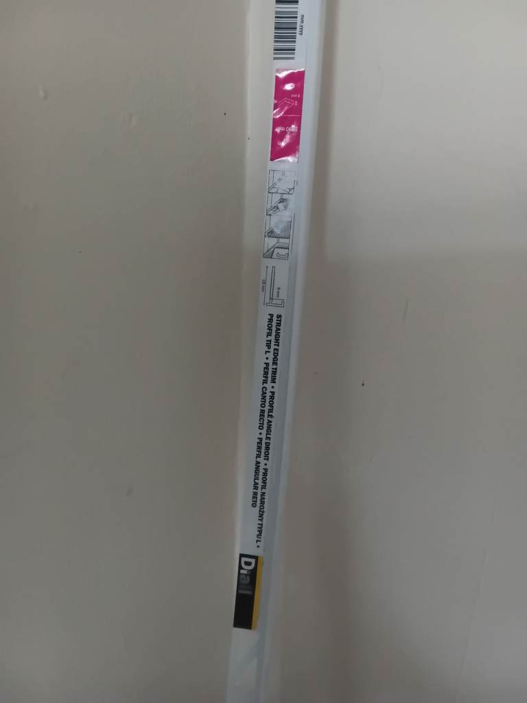 Tile edging in white plastic, full length plus half length.