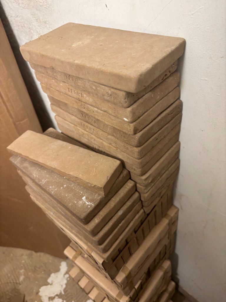 Italian antique looking tiles, 1 tile represent 4 squares, tile size 45 cm x 45 cm, 2 x packs of 5 tiles + 1 loose so 11 tiles in total.