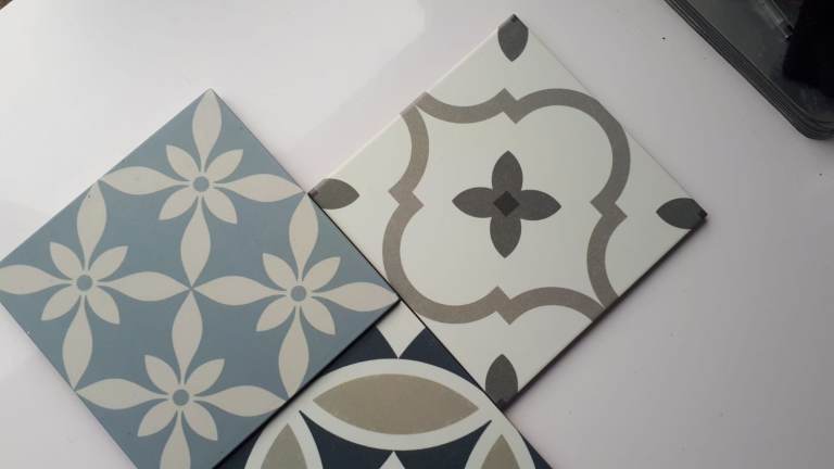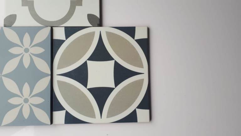 Three Large Jasmine Blue Patterned Floor Tiles 20 x 20 cm