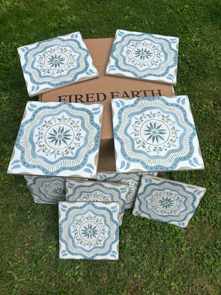 3 x Traditional Fired Earth Floor Tile Mediterranean style blue patterned tiles for kitchen/bathroom/hallway/floor