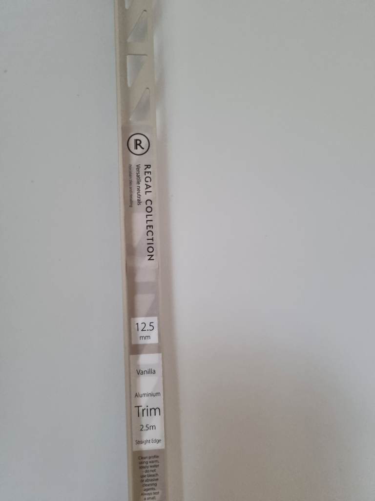 Brand new vanilla coloured tile trim. 2.5m length, 12mm depth