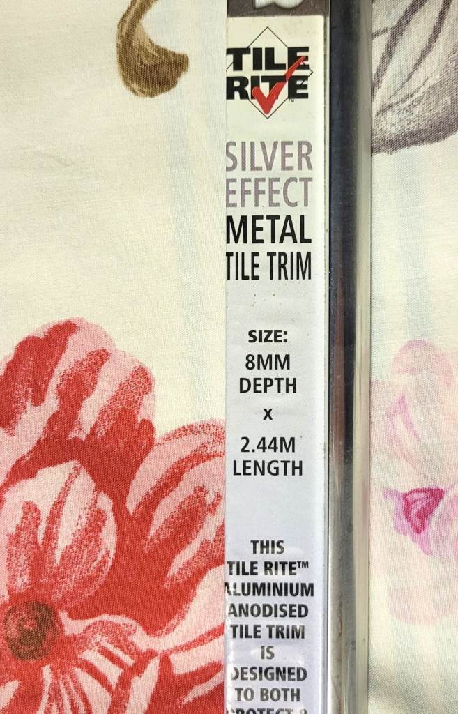 Polished Chrome effect 8mm Round Aluminium External edge tile trim. X3 full lengths 2440 mm 8ft plus 1X 1700mm length Surplus to requirements