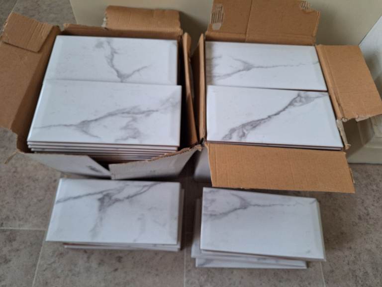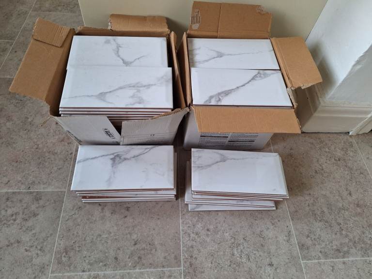 Marble effect wall tiles for sale. Measurements on box. See pics. Collection only. £25 for two full boxes plus some extra tiles from open box. Plz message for details.