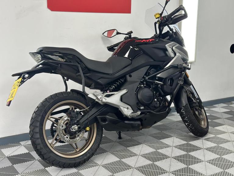 Black, 2024 CFMoto 700MT with **6,500 miles** in excellent condition. Versatile adventure bike featuring a smooth 693 cc twin, comfortable ergonomics, luggage-ready design and modern tech. Perfect for commuting, touring and weekend exploration. Reliable, well maintained and ride-ready. Great value adventure touring machine.We are able to offer a wide range of finance options through our broad range of lenders offering finance up to 60 months. If you would like to discuss a part exchanges, we can look at cars, bikes etc against any of our vehicles in stock, please contact us with all the details.All payments methods are accepted, including bank transfers, cash and several types of crypto currency including ETH, BTC and XRP. Please contact us to discuss any payment method not mentioned.If you would like to view the bike please do get in contact to book an appointment as the bikes are not kept on site, thank you., 1 owners,
