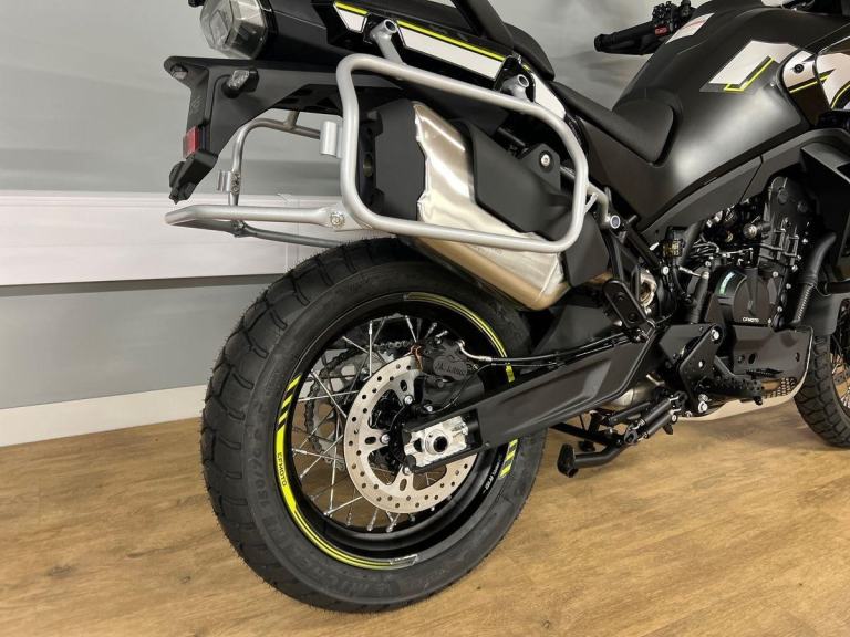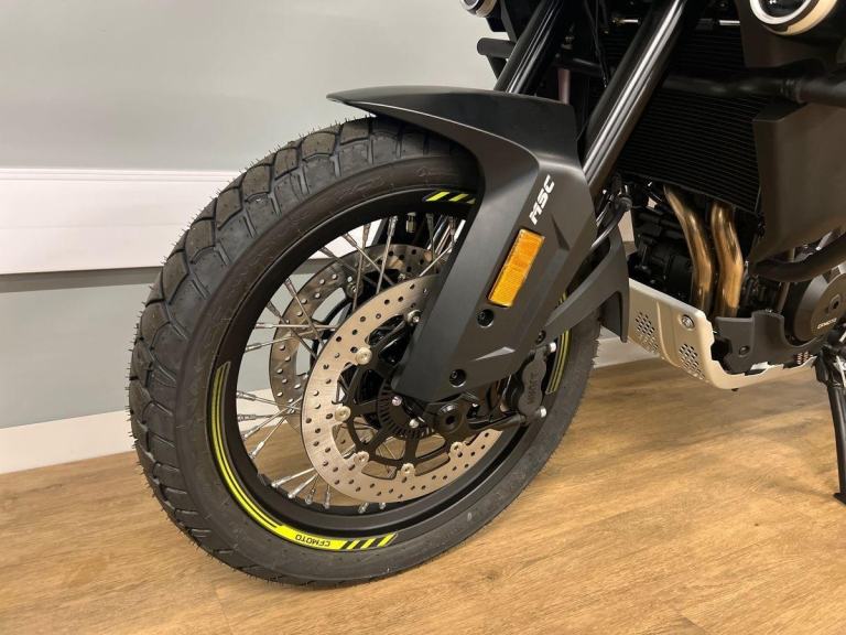 The CFMOTO 800MT Explore is a versatile adventure-touring motorcycle designed for riders seeking a blend of performance, comfort, and modern technology, making it ideal for long-distance touring, weekend adventures, or daily commuting. Powered by a 799cc parallel-twin engine, it delivers smooth, linear torque, strong mid-range power, and responsive acceleration, providing effortless overtaking, precise handling, and confidence across a variety of road conditions. The advanced electronic fuel injection system ensures consistent power delivery, reliable starting, and smooth throttle response, while the six-speed transmission allows seamless and precise gear changes for maximum control and efficiency. Built on a lightweight yet rigid steel trellis frame, the 800MT Explore combines stability at higher speeds with agile manoeuvrability, making it equally capable on highways, backroads, or urban streets. Fully adjustable front and rear suspension provides comfort, control, and effective absorption of bumps and rough surfaces, while dual hydraulic disc brakes with ABS deliver dependable stopping power and enhanced safety in all conditions. Ergonomically, the bike features an upright riding position, wide handlebars, and a comfortable seat, ensuring long-distance comfort without compromising sporty control. Additional features include LED lighting, a full-colour TFT display, and modern electronics for connectivity, navigation, and rider aids, combining style, convenience, and functionality. This used CFMOTO 800MT Explore is a well-maintained, ready-to-ride machine, blending performance, reliability, and practicality. It offers riders a versatile, high-performance, and confidence-inspiring adventure-touring experience, perfectly suited for extended journeys on any road or trail.