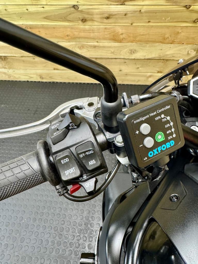 What a fantastic, futuristic mid range beast. I had to research this particular model prior to purchase and was pleasantly surprised by the specification. It boasts Eco, Sport and Off Road mode with cruise control for longer journeys. The only keeper has added some Oxford heated grips for comfort. As you’d expect from bike covering under 750 miles, it’s literally as new. Make no mistake, the previous and current retail value of this particular model is £5000. An incredible saving for just several hundred miles. See dealer spec below: