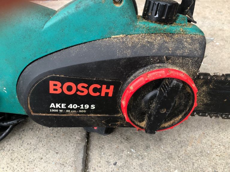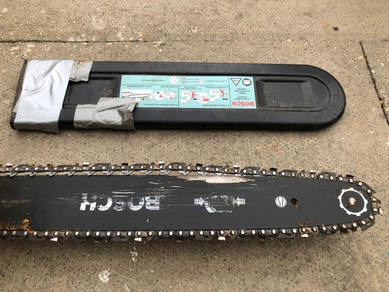 Bosch Chainsaw with Protective Trousers and Visored Helmet