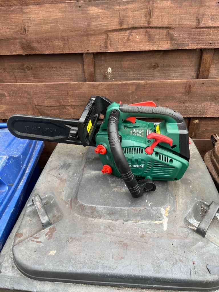 Brand New Parkside petrol chainsaw, complete with accessories.