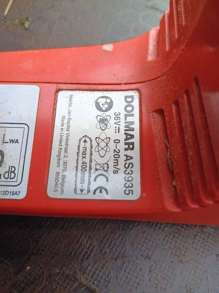 Excellent condition, little used, no longer needed. Although badged Dolmar it is the same as Makita DUC3532 & is powered by 2 no Makita 18v lxt batteries ( not included, body only)