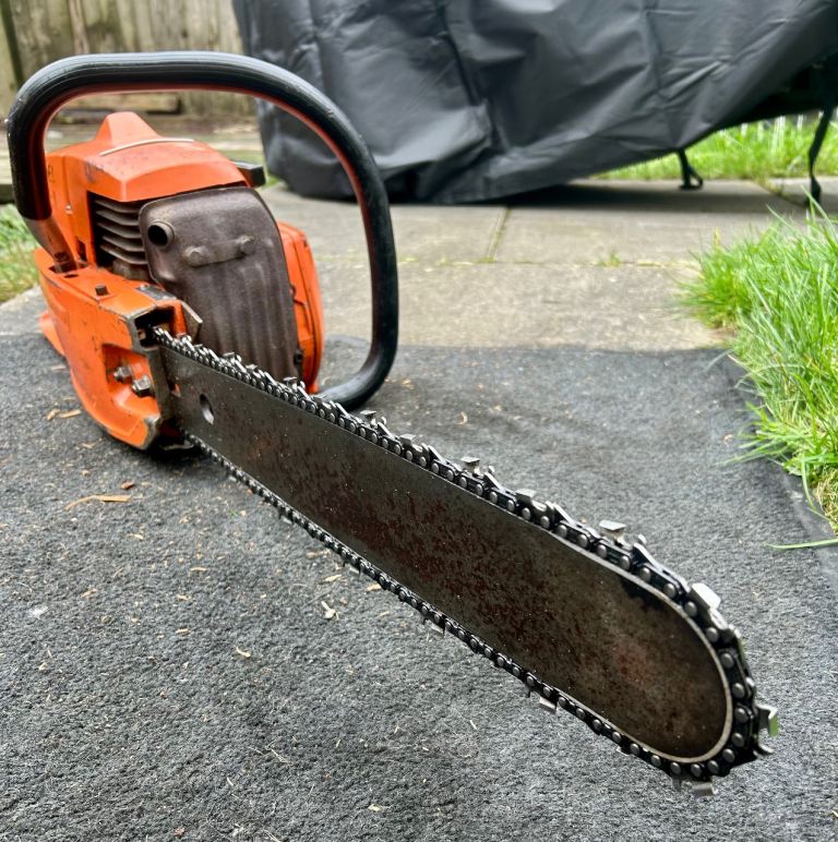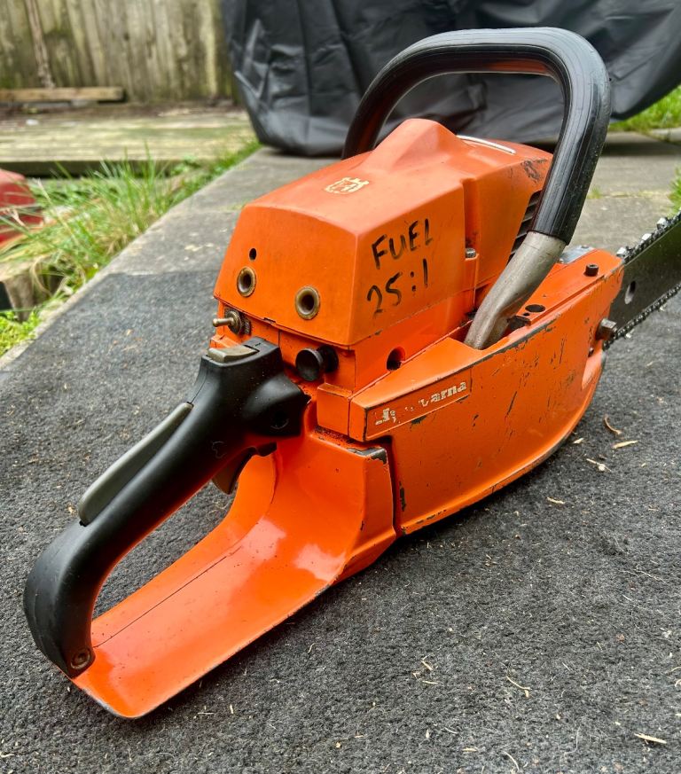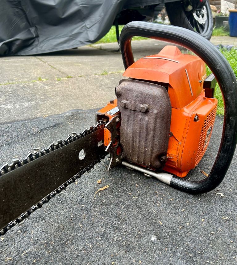 :BEWARE this chainsaw is from a time of no health/safety laws & does not have a chain brake.