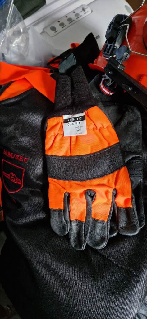 new rocwood chainsaw bib & brace size xl . gloves .helmet .. holdall