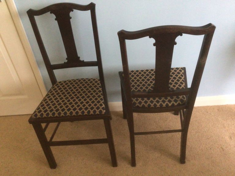 2 matching chairs upholstered in navy. Really good condition. Sturdy.