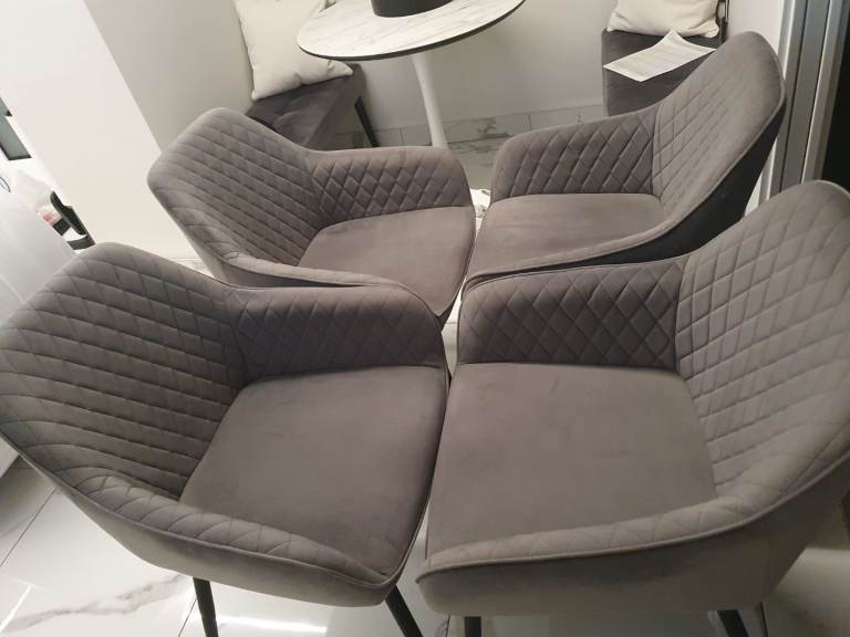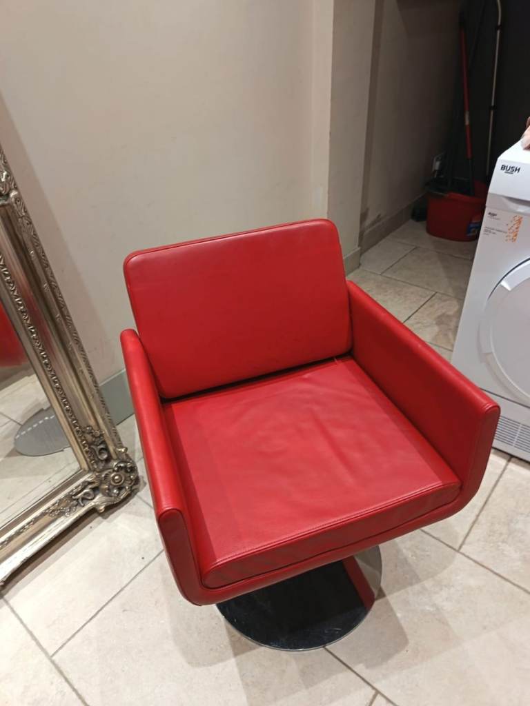 4 Red salon style chairs. Swivel base and slight recline. Quirky dining table chairs or stand alone. Previously used around low breakfast bar. Comfy and in good condition
