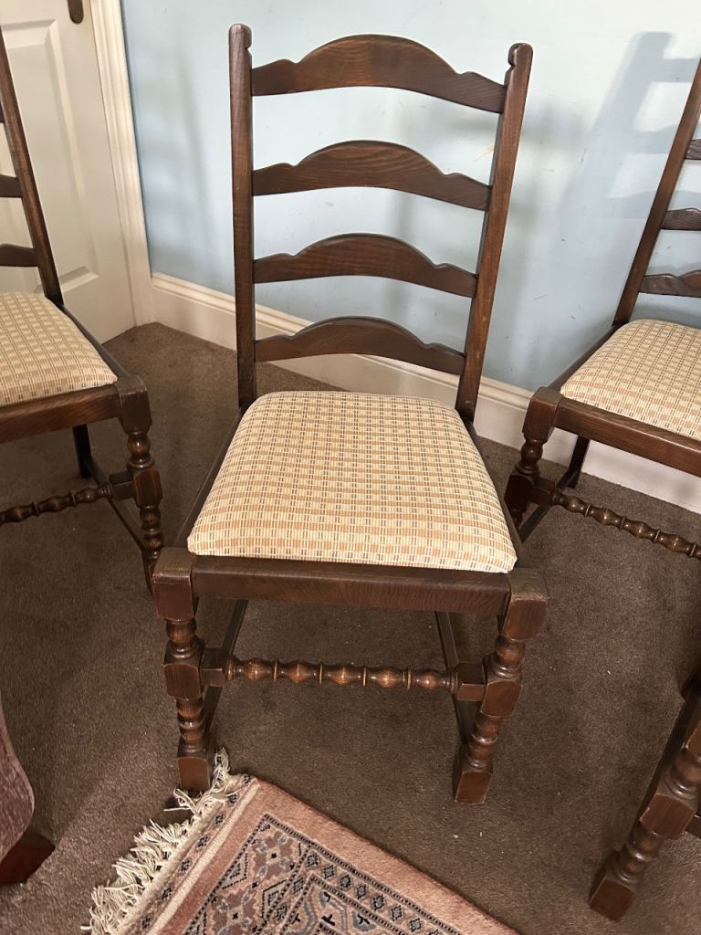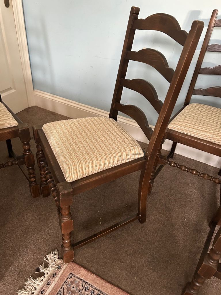 4 Vintage Solid Oak Ladder Back Dining Room Chairs Turned Legs