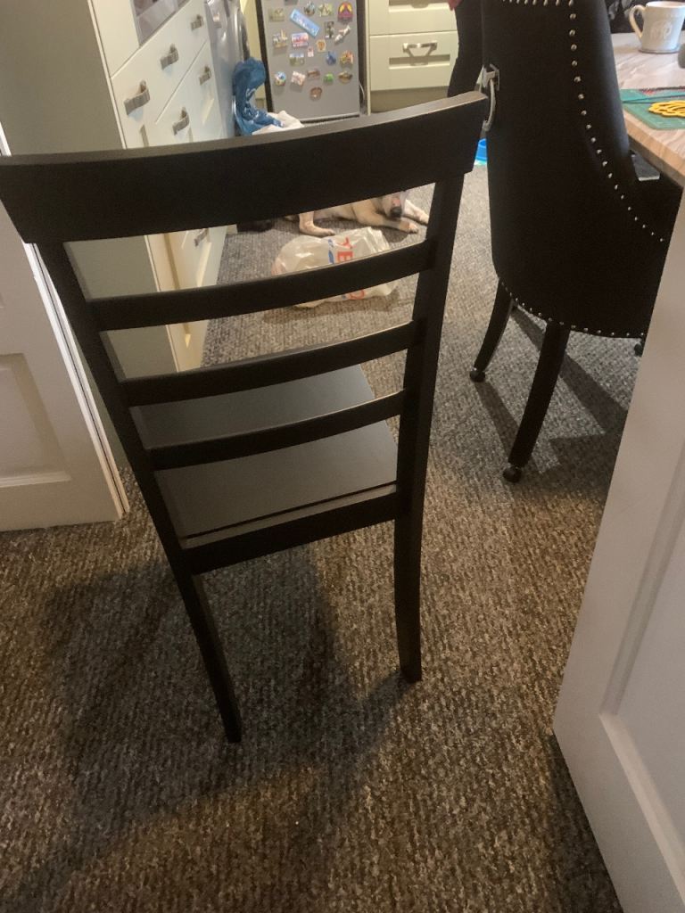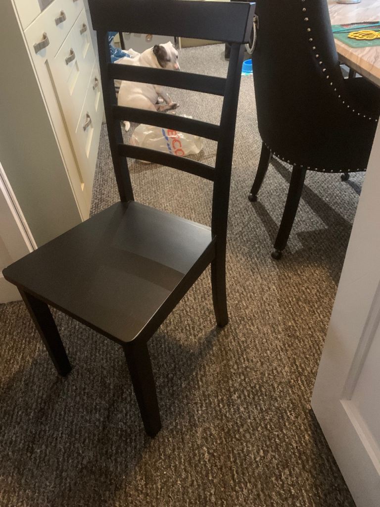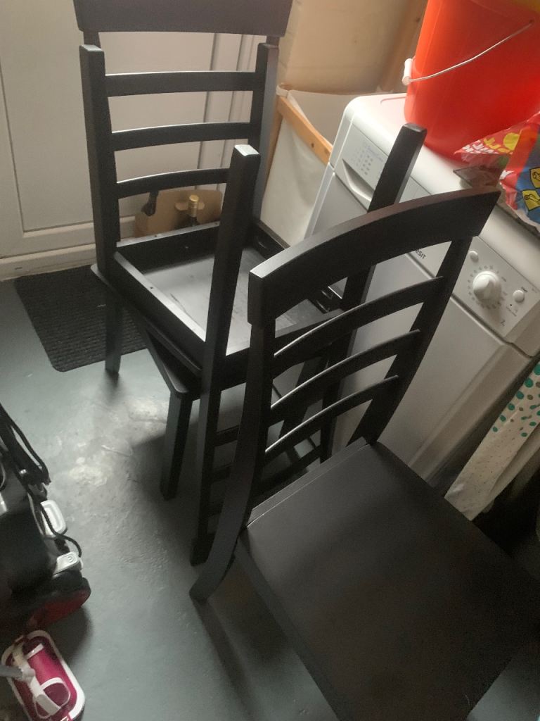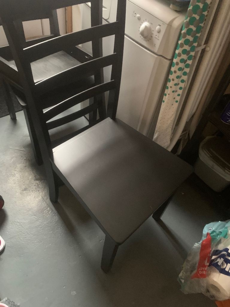 4 chairs in black , very good condition, for dining etc , very strong chairs well made ,,£30.00 Ono ,, make a offer thanks ,,larkfield Me206lw are.,,, please message on gumtree messenger only any other social media wots app etc will be ignored due to scammers thanks.