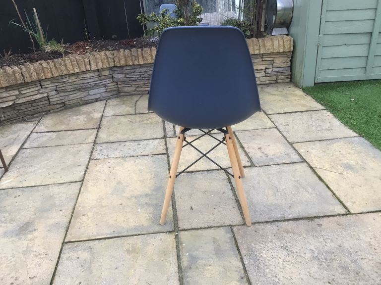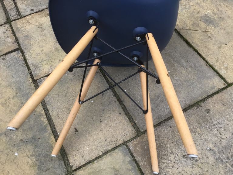 6 x Eames style dining chairs, hard plastic with pine legs , in good condition, £10 each or £50 for 6.