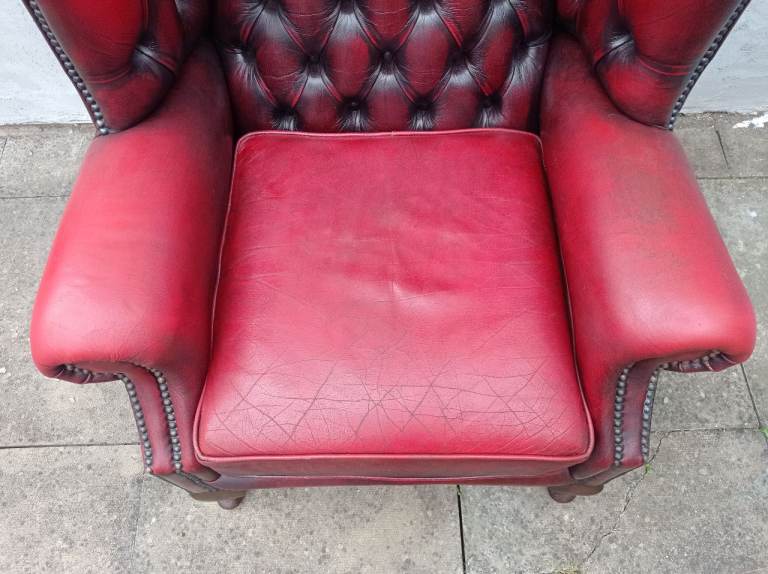 I have for sale a Georgian Red Leather Chesterfield Queen Ann Arm/Wing Chair.