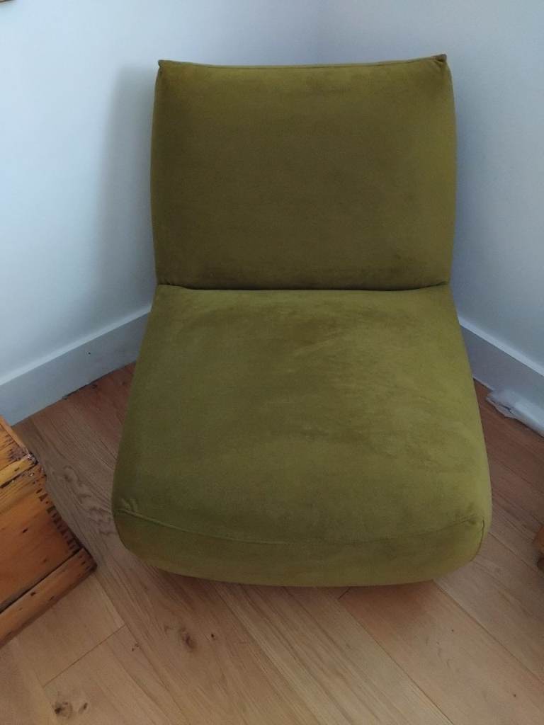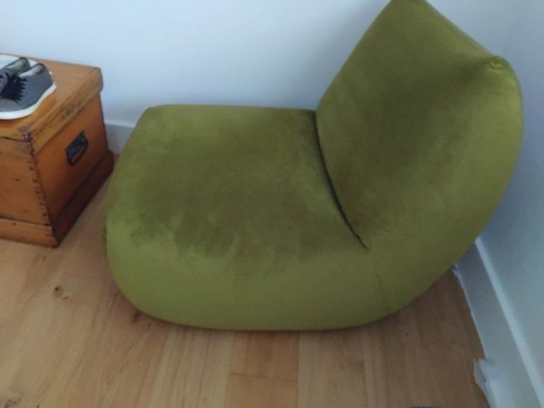 Soft brushed suade as opposed to traditional leather. Fabric feel making creating comfort & snuggle effect.