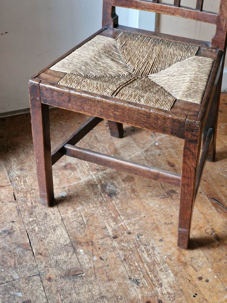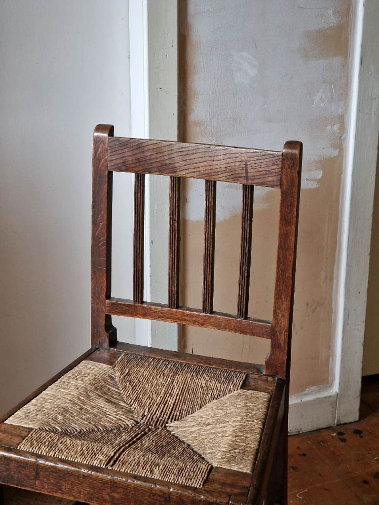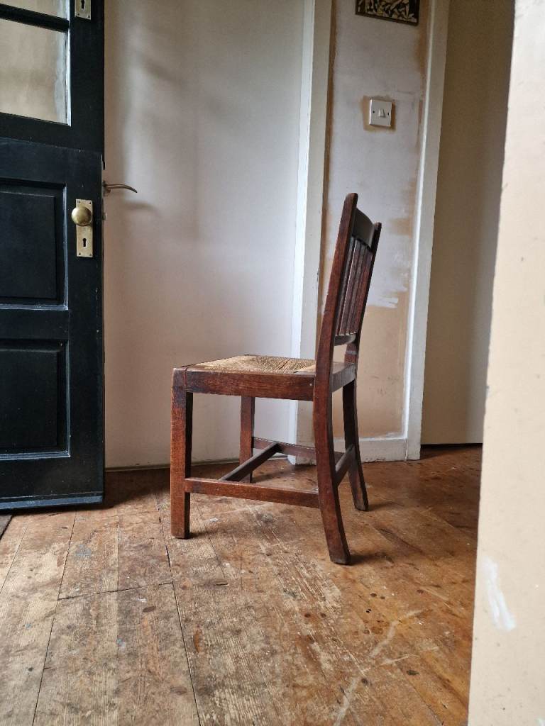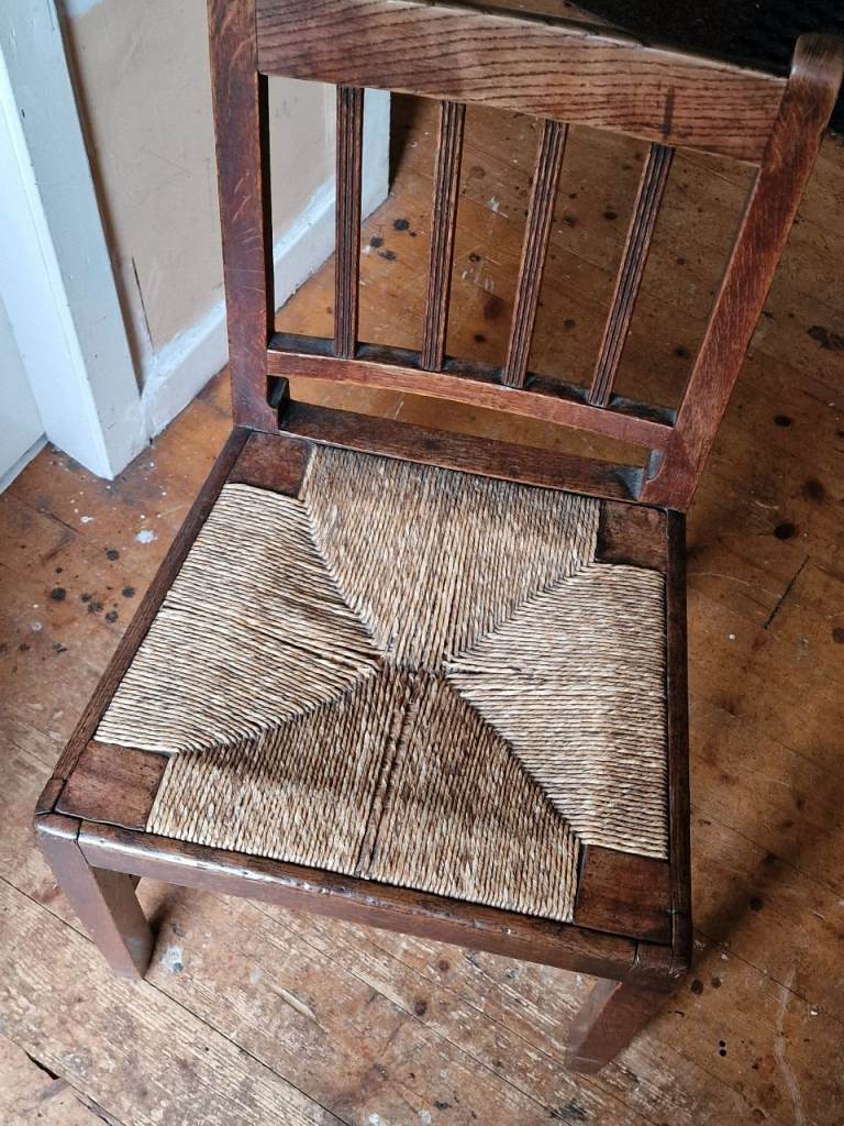 Antique Arts and crafts wooden chair with a rush seat. In very good condition.
