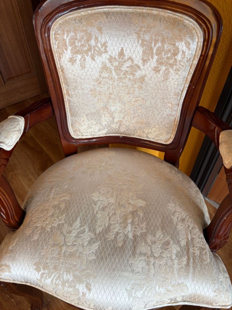 Would benefit from a change of fabric as it is a very light colour, this was my plan when I bought it, but just don’t have the time so selling it on for someone else to upcycle.