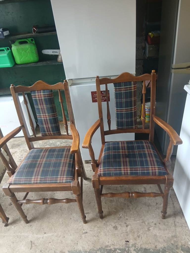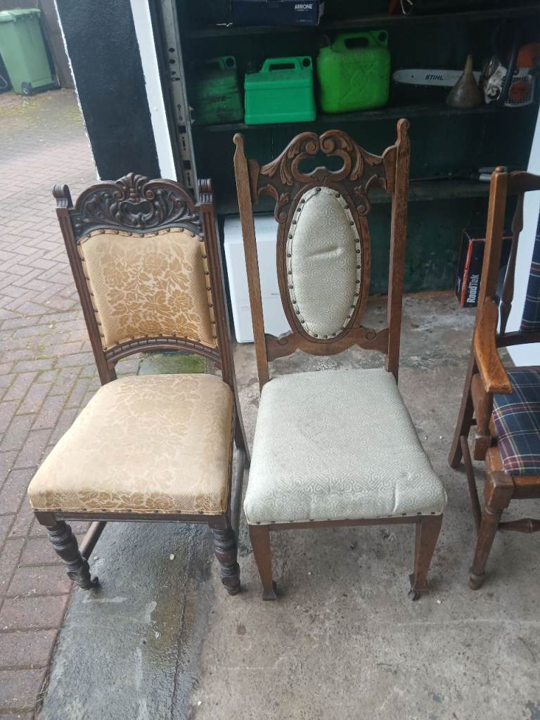 4 antique dining chairs two with arms two with casters £10 each can deliver