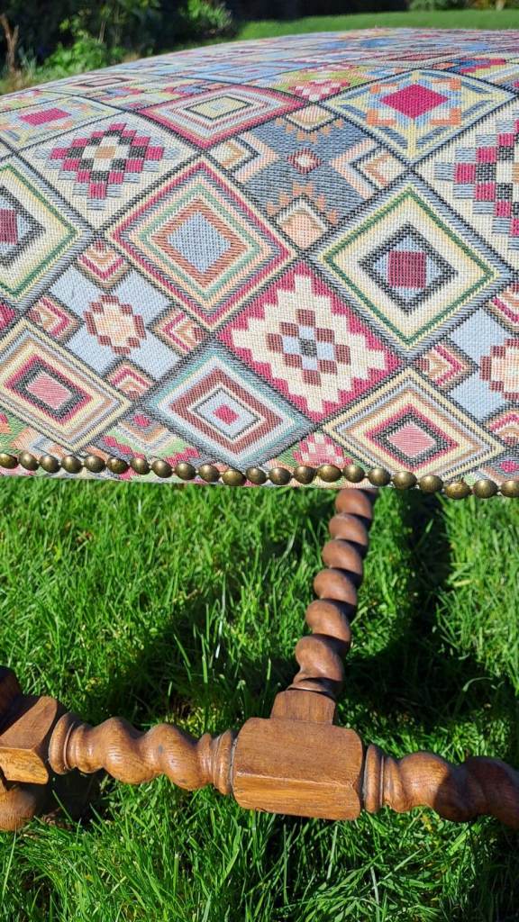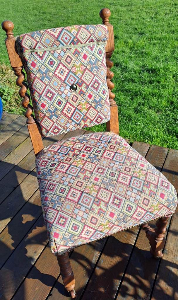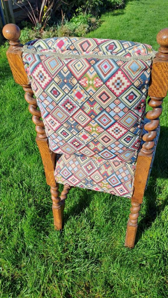 Posting for 6+ yearsAntique oak barley twist upholstered chair