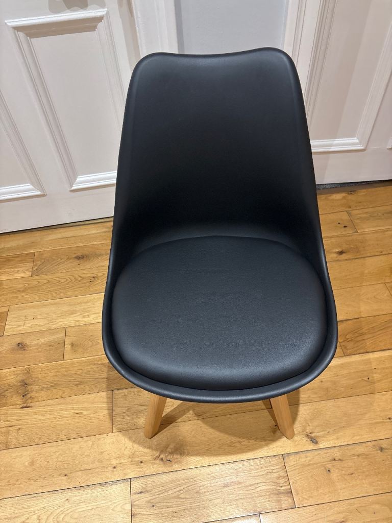 Brand new dinning chair 6 black with built in cushion. Looking for £60 or nearest offer as the cost me £120