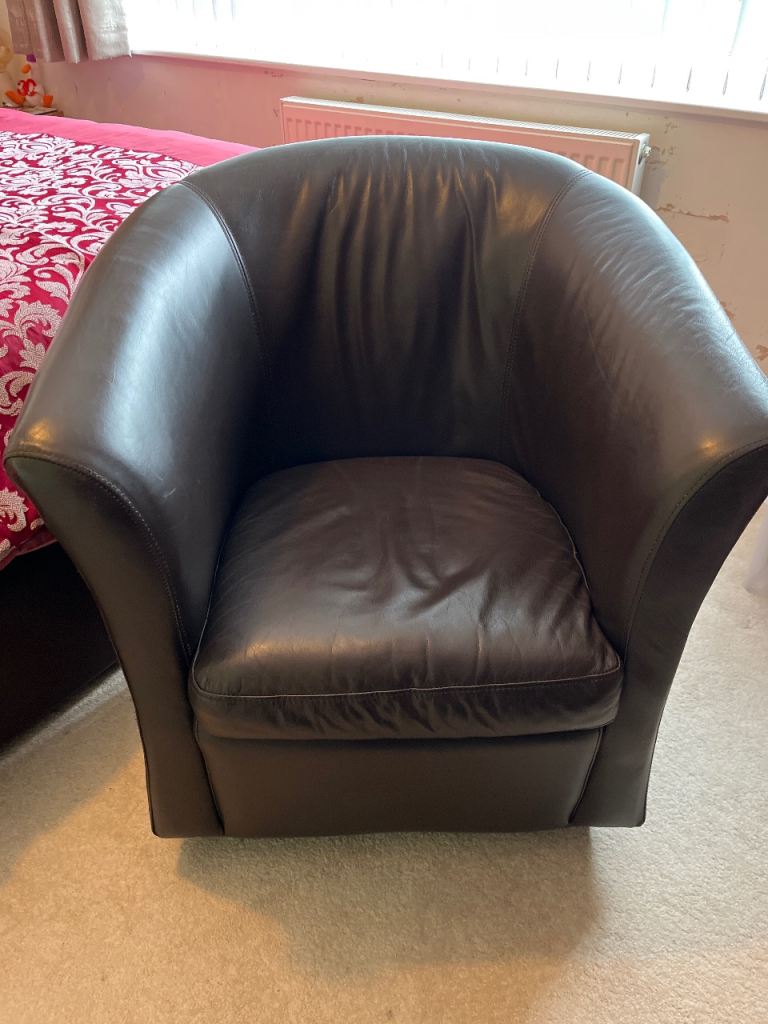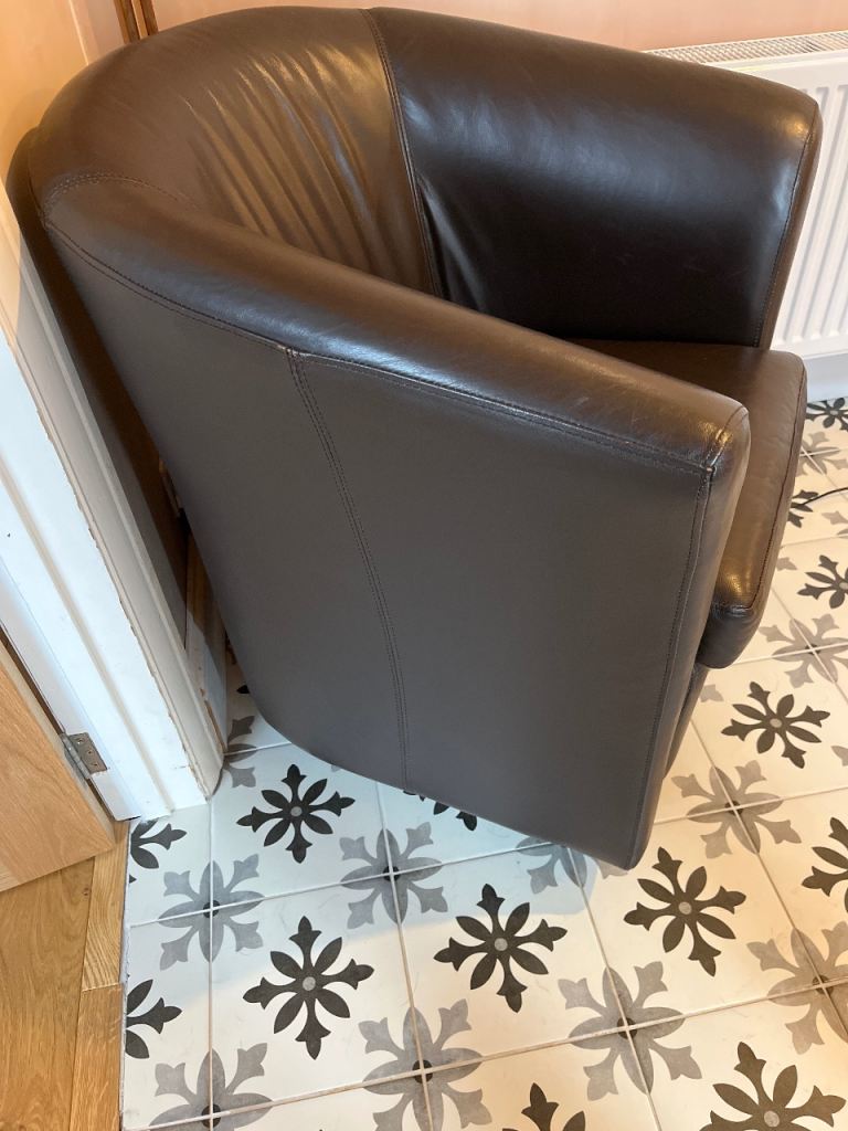 Brown leather tub chairs x 2