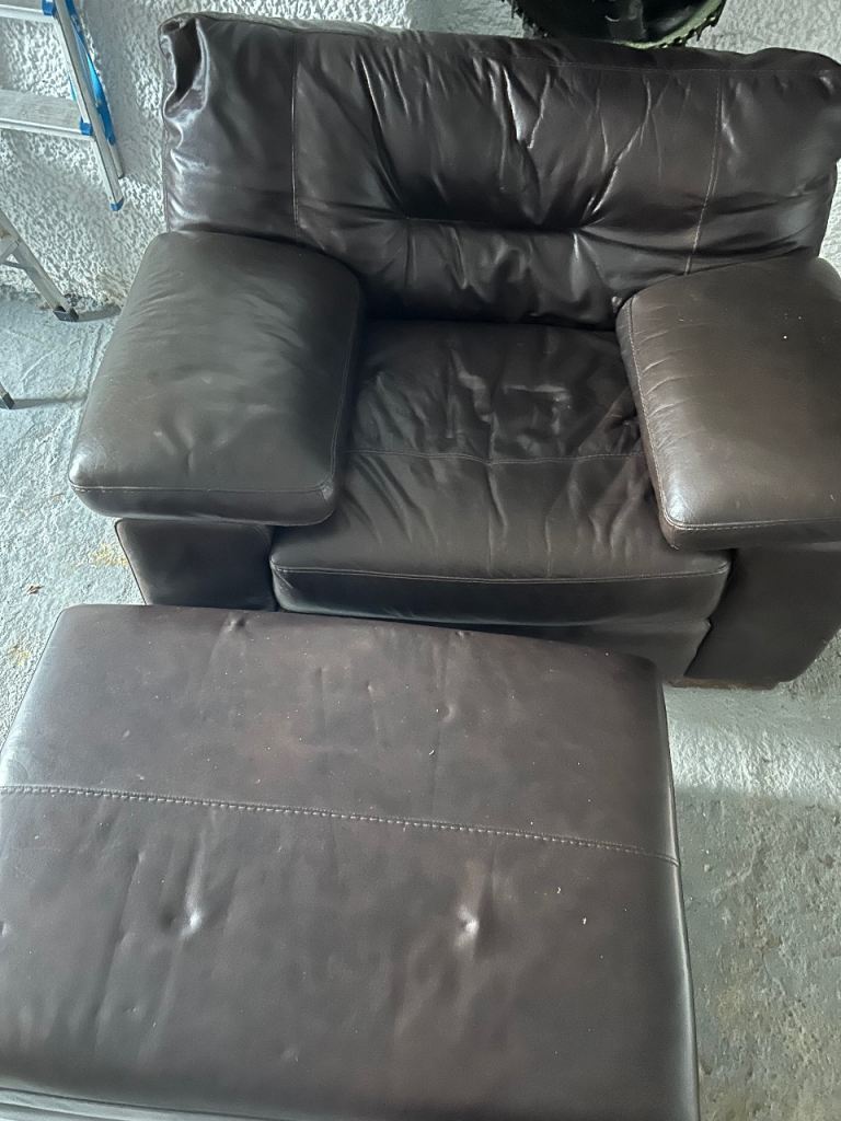 Brown leather chair and matching foot stool
