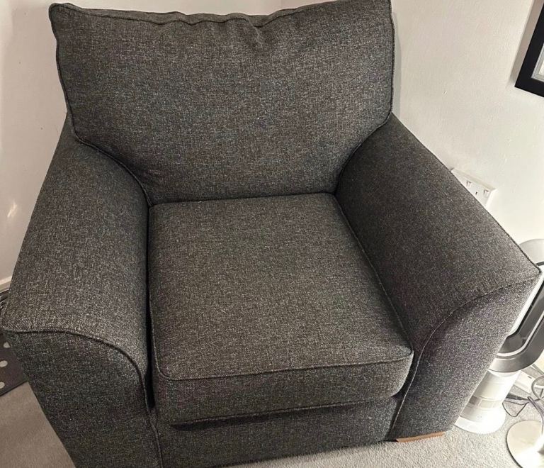 Next armchair for sale in a dark grey. Width 106cm x height 95cmx depth 94cm. Selling due to refitting of kitchen/living room