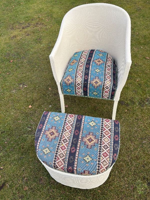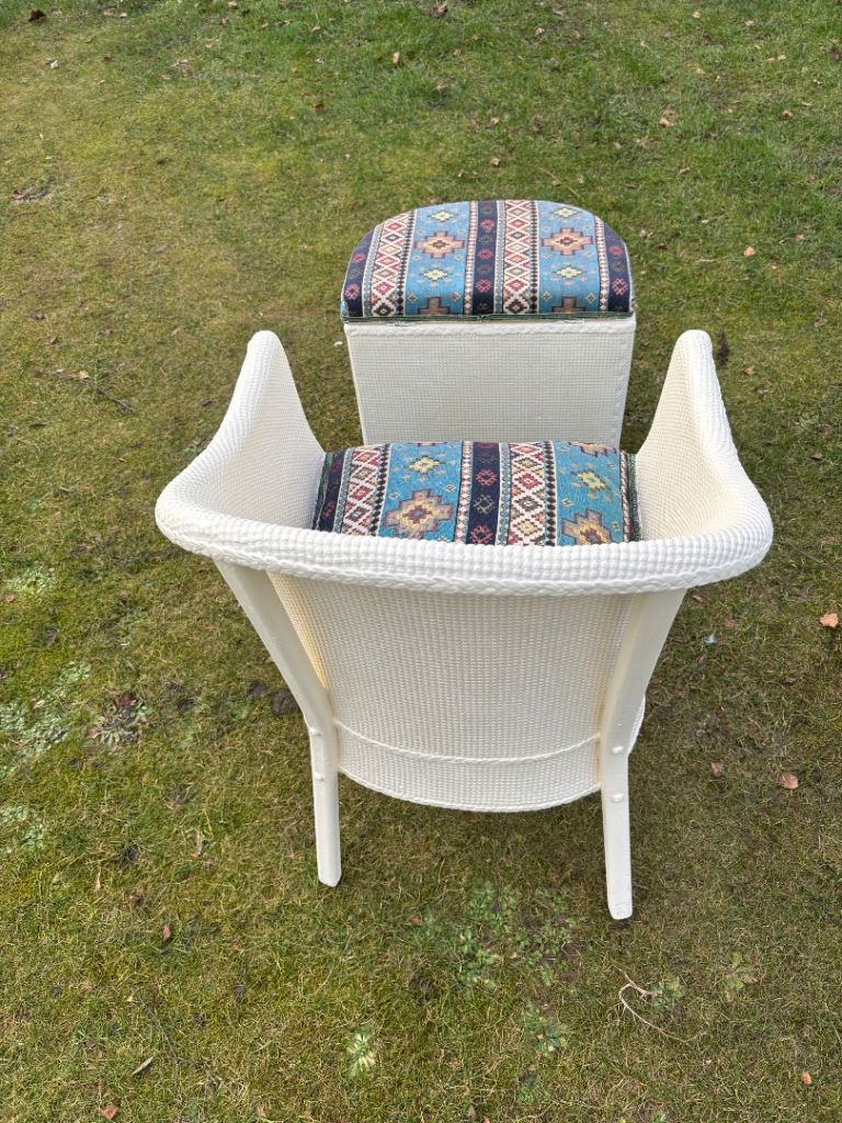 Wicker chair set Loyd Loom. Chair and storage box/foot stool. Nursing chair. Vintage