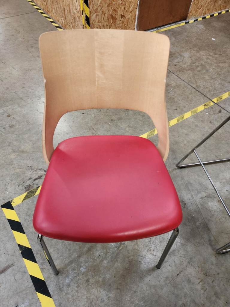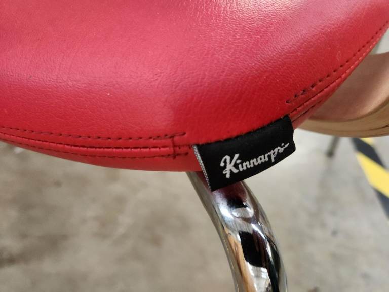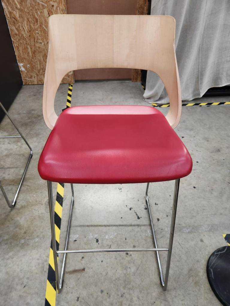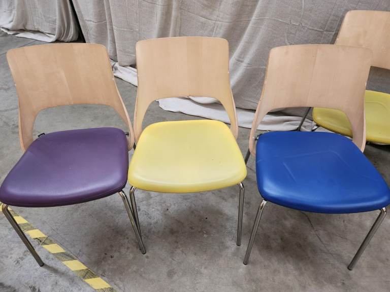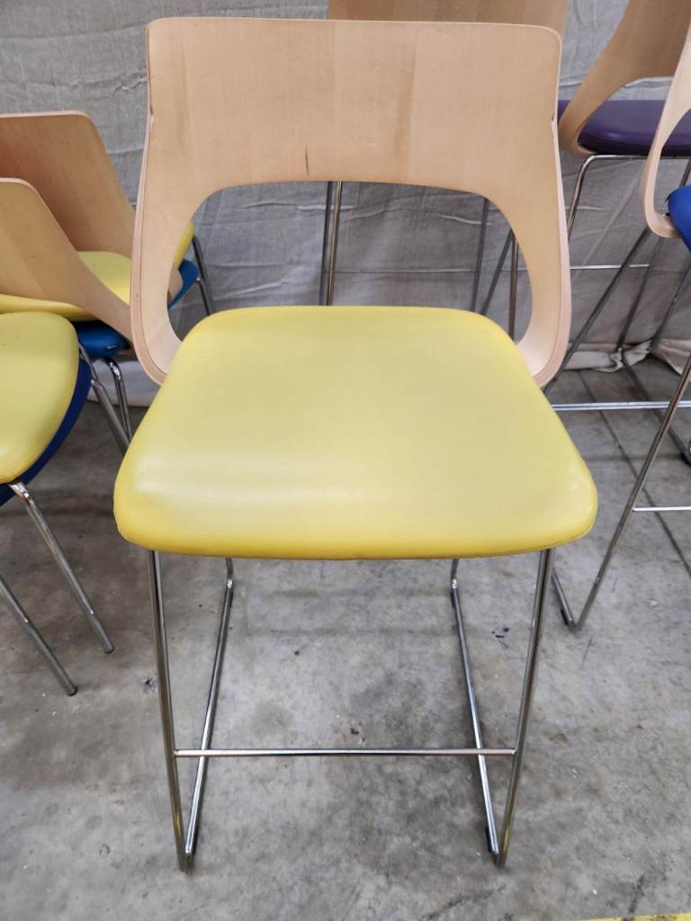 Nice colours with wooden backs, chrome legs and leather base.
